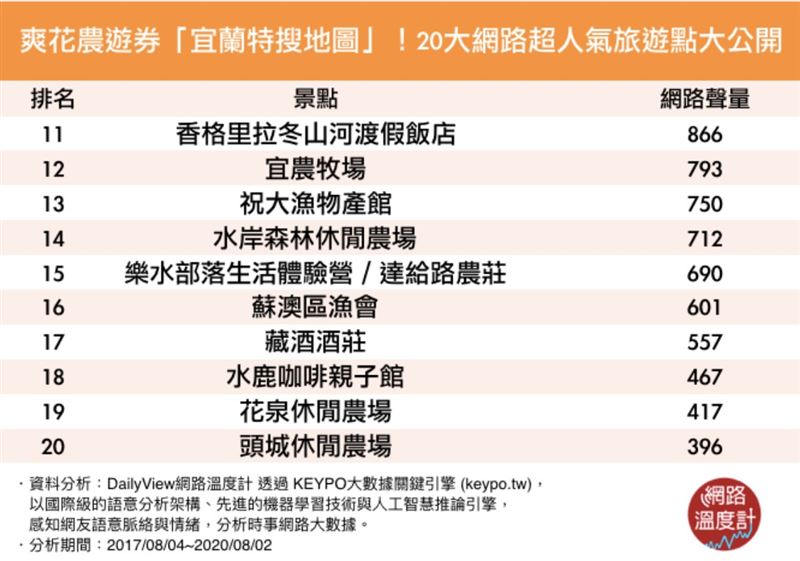 爽花農遊券 宜蘭特搜地圖 20大超人氣旅遊點有吃又有玩 每日排名調查 第1頁 Dailyview 網路溫度計